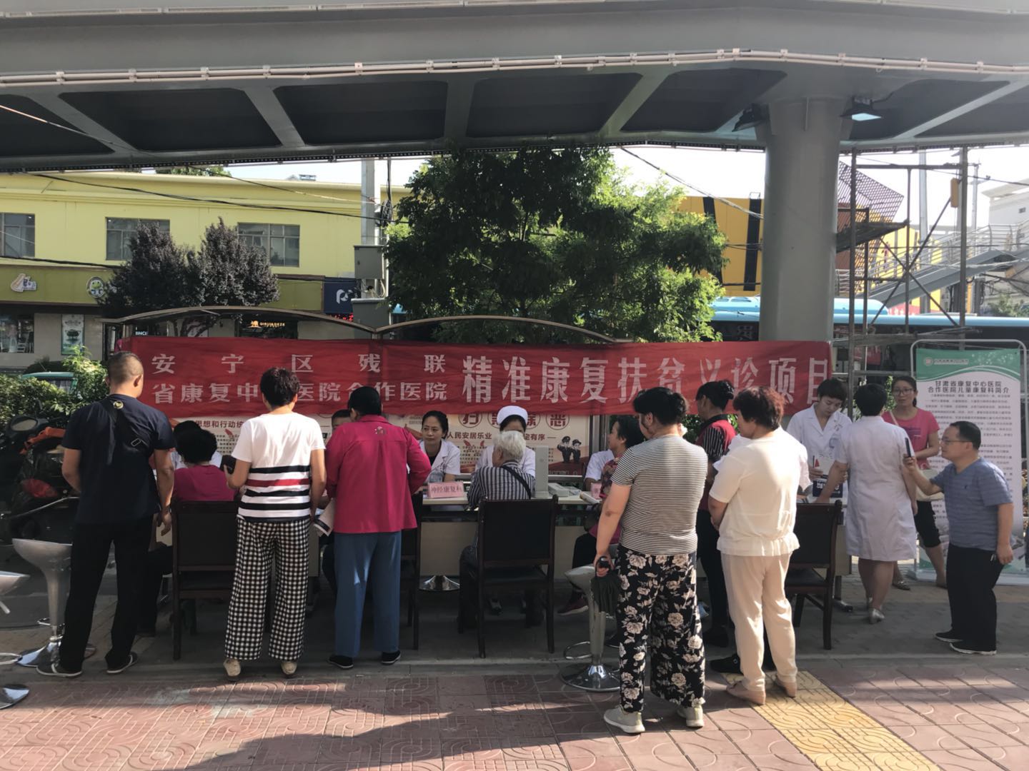 7月28日,省康复中心医院合作医院相关专家,联动安宁区残联、街道、社区以及卫生站,开展精准康复扶贫项目筛查义诊活动,第二站进驻科苑社区和长风社区。义诊当天,合作医院共选派9名专家及医护人员利用周末休息时间,顶着烈日,不辞辛苦,用专业的康复医疗技术和爱心奉献,为广大居民送上贴心的问候。在安宁区残联的支持、联动和精心组织下,先后有150余名残疾人来到活动现场问诊咨询、学习残疾预防知识,医护人员为现场群众进行了免费咨询诊疗、血压检测、康复指导及健康宣教,发放健康知识宣传资料及爱心就诊卡百余份;并对儿童脑瘫、智障、孤独症及行动不便的特殊残疾患者上门入户筛查摸底,受到大家的一致好评。