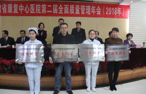 会上,医院党委书记宣读了《关于表彰2018年度全面质量管理优秀考核组优秀科室优秀夜查房专家的通知》文件,党政班子成员为获奖团体和个人颁发了奖牌和奖状。医院院长在致辞中,对医院以全面持续推进质量管理体系建设为抓手,强化薄弱环节管理,评估总结持续改进,提升医疗质量服务,全面推动了医院的各项康复医疗工作取得实质性进展,医院业务总量在保证质量前提下已实现连续八年递增,2018年更是创历史新高。同时,就进一步履行好职责,创新工作方法,提高医疗质量控制工作水平;科学完善康复医疗质量控制与评价体系,建立现代医院管理制度;把握质控重点,深化内涵,保障医疗质量控制工作取得新实效等方面提出要求。医院副院长、质控轮值主席就2018年全面质量控制工作作了全面总结;11个质量考核小组分别围绕2018年质量考核工作、取得的成效、存在的问题等作了汇报;四个临床科室代表就一年来开展的具体质量控制工作作了发言。孙学勤教授对医院全面开展质量管理体系,推动医院发展建设取得新成效给予高度赞誉,并围绕加强医院经营管理作了专题讲座,旨在进一步以医院质控绩效管理为抓手,持续提升医院综合管理水平,以优质康复医疗品牌,促进医院发展再上新台阶。