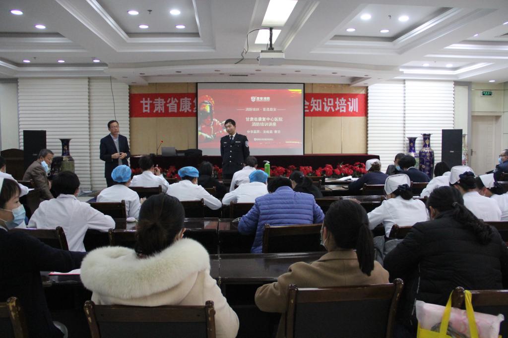 为进一步宣传普及消防知识,增强医院职工消防安全意识,提高正确处理火灾等突发事件的应急能力,杜绝火灾隐患,构建平安和谐医院,11月13日下午,省康复中心医院邀请兰州政安防火知识宣传中心吴岐鑫教官为广大医护人员作了消防安全知识专题讲座。讲座紧紧围绕“关注消防,生命至上,构建平安医院”主题,从消防安全基本知识和近年来发生的重特大火灾事故典型案例,对消防安全工作的重要性、消防器材的使用、火灾中安全自救逃生方法等方面作了全面讲解。同时,针对医院行业的特殊性,提出加强医院消防安全建议与火灾防范指导,为营造安全和谐医疗环境,确保患者及医院安全有序运行提供了有益思路。