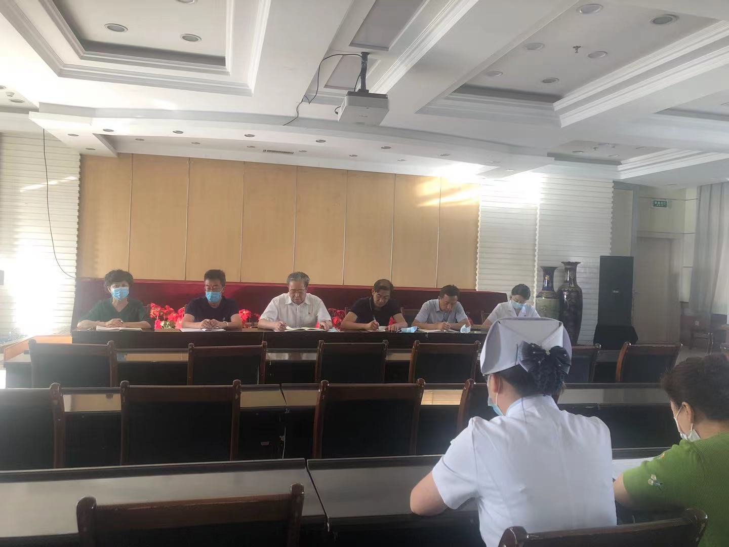 8月5日上午7点40分,省康复中心医院负责人王登廷主持召开紧急会议,传达学习国务院联防联控机制8月4日新冠疫情防控电视电话重要会议精神,并就做好医院疫情防控工作作出再部署、再安排。