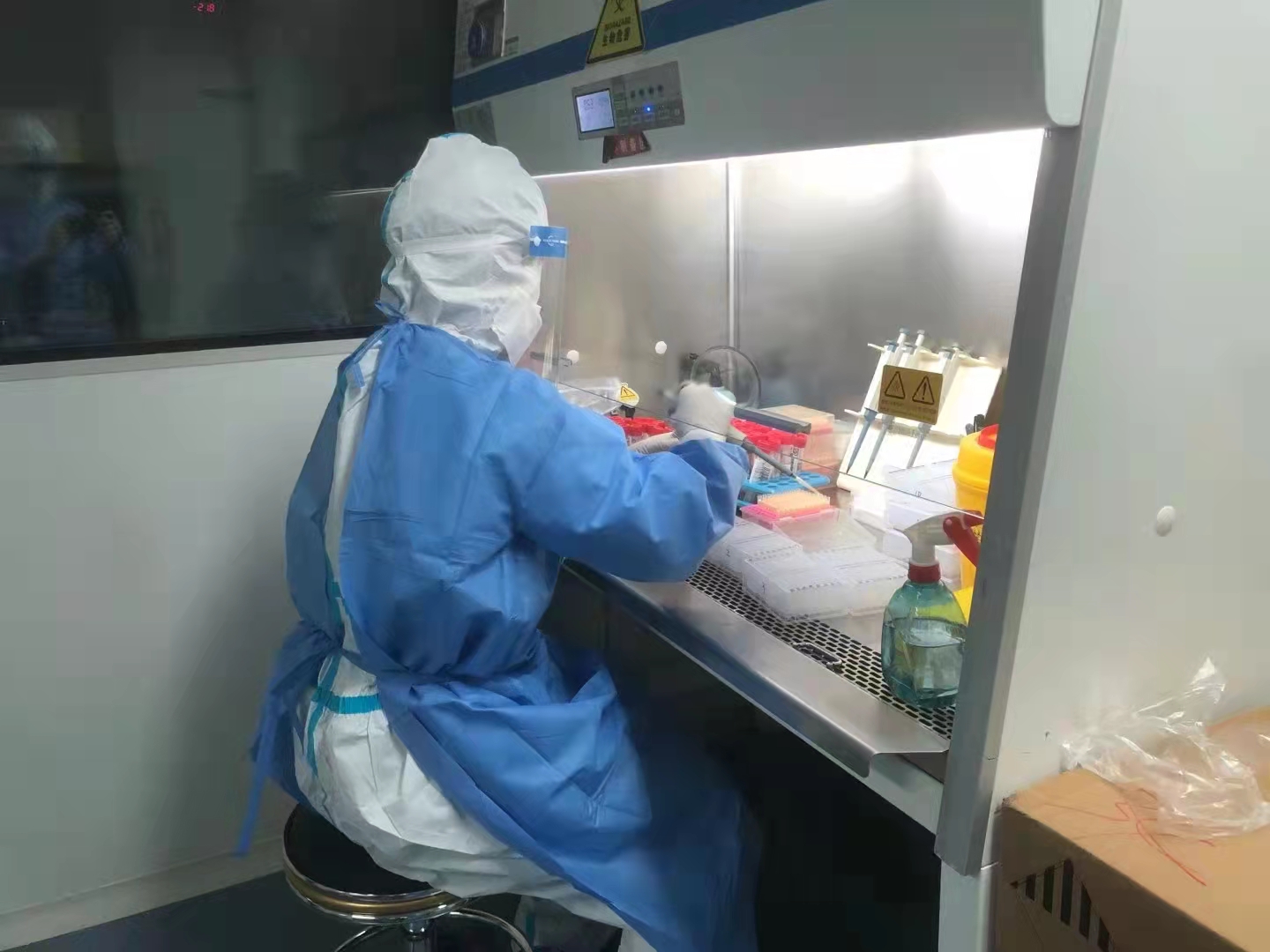 从20日至27日,医院PCR实验室完成本院核酸检测任务近4万人份,一份核酸检测从采样到出具报告,需要经历样本灭活、配制体系、提取核酸、PCR扩增、实验结果判断5个环节,每一步都存在感染风险,实验过程不仅需要谨慎操作,还需严密防护,才能与可怕的新冠病毒作战。为了保证检测质量和生物安全,他们每时每刻都要严谨对待每一份检测标本。