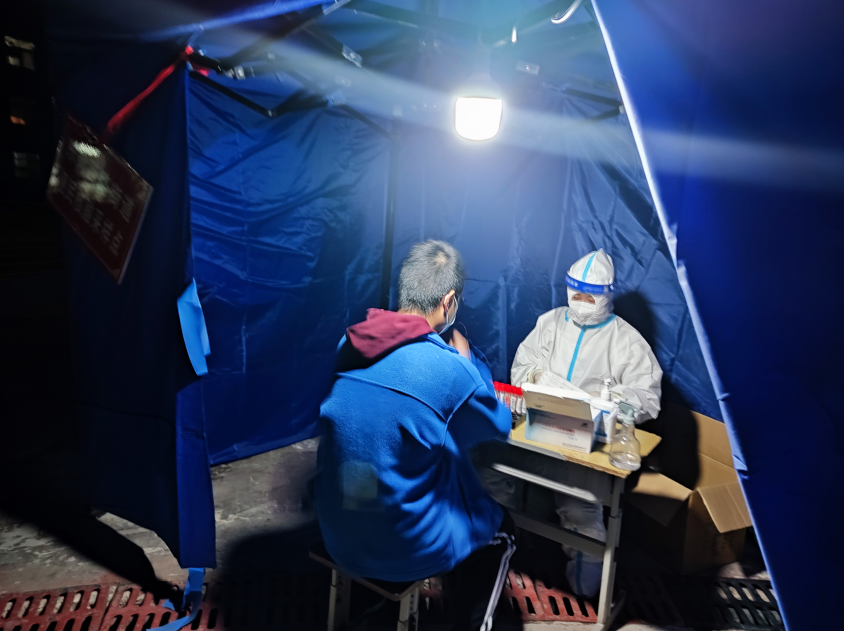 经历了7轮大规模群众采集工作,查验健康码、录入信息、核对信息、采样,做到精准无误,精益求精,已成为她们每时每刻最熟悉的工作流程和工作常态;“头后仰45度,张大嘴,说啊”“请正确佩戴口罩,勤洗手,不扎堆,不串门……”已成为她们时时刻刻挂在嘴边的话,每天要重复上千次。穿着防护服,看着长长的排队队伍,她们不敢喝水,没有时间吃饭;夜晚不敢轻松睡觉,时刻关注着手机信息,随时等待出发的命令。这些都已成为她们工作和生活的全部,已深深注入她们每一个细胞……