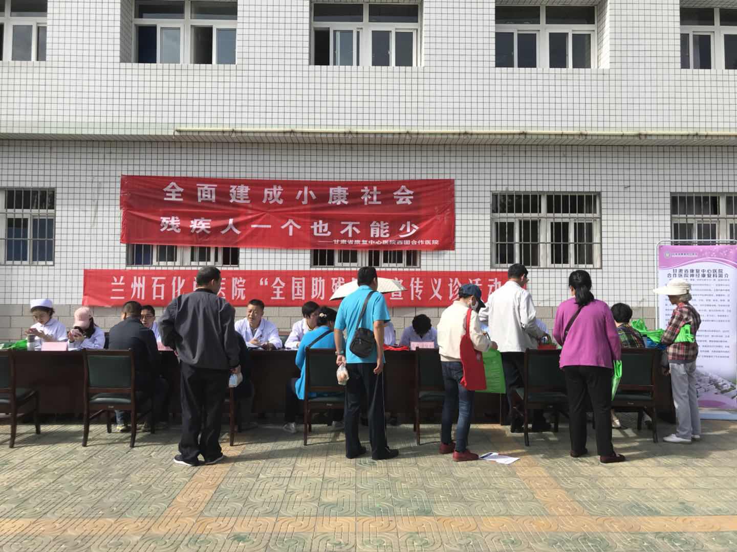 5月18日,按照省残联开展第二十八次全国助残日活动部署安排,省康复中心医院合作医院联合兰州石化总医院共同开展“康复医疗资源进社区、服务零距离”助残惠民义诊活动。活动当天,合作医院各康复科室联合兰州石化总院眼科、心内科等专家分别在医院院区、石化小区开展免费义诊、测量血压、血糖、健康教育宣教等服务。共免费接诊百姓500余人,发放宣传资料共计千余份。