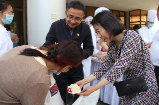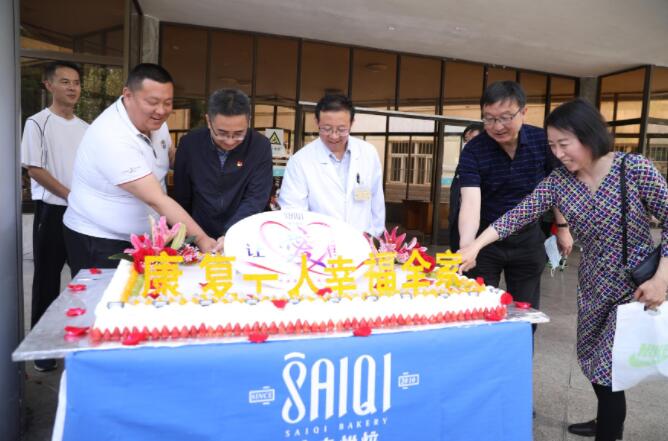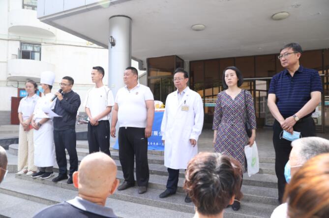 苜蓿香花,树木葱茏。六月是苇叶糯米飘香、仲夏树木成长的美好季节。6月11日上午,在省残联和分管副理事长曾占奎的关心支持下,甘肃塞奇食品有限公司总经理一行承载着浓浓的爱心,来到省康复中心医院合作医院,慰问残疾患者和抗击新冠疫情的广大医护人员,并将爱心蛋糕和粽子送给住院残疾患者和医护人员。用实际行动践行扶残助弱、关爱生命、共抗疫情的初心使命和企业社会责任担当精神。甘肃塞奇食品有限公司总经理,西固区、安宁区残联理事长,甘肃宝石花医院副院长,合作医院综合管理办负责人以及住院残疾患者、家属、医护人员近百人参加活动。